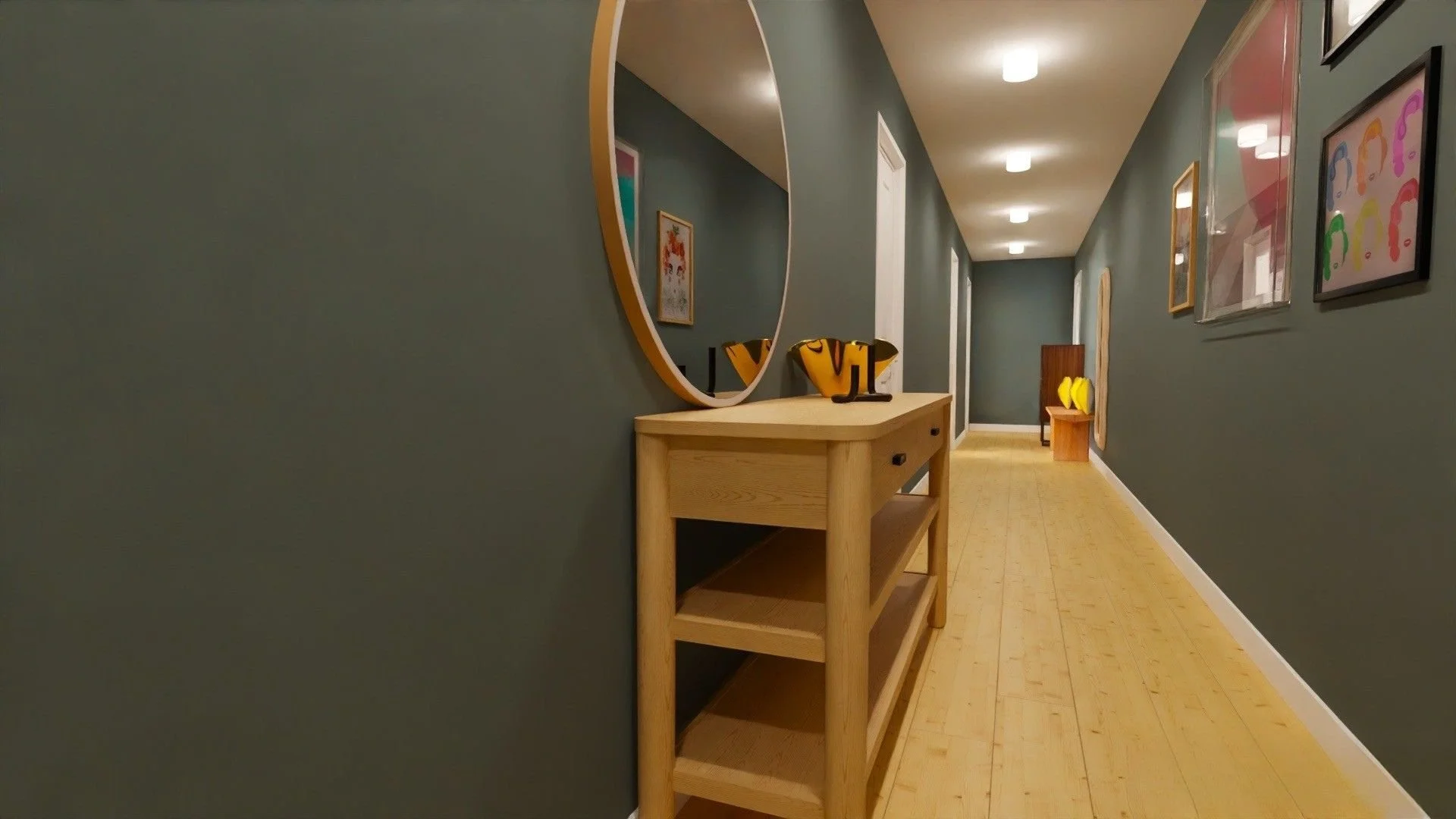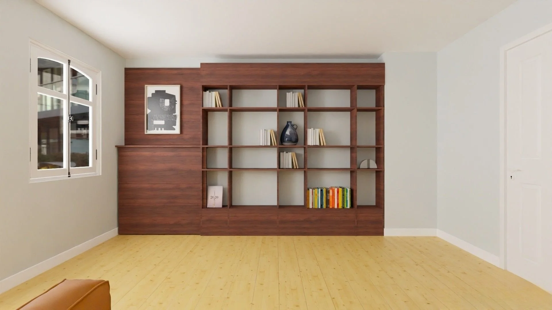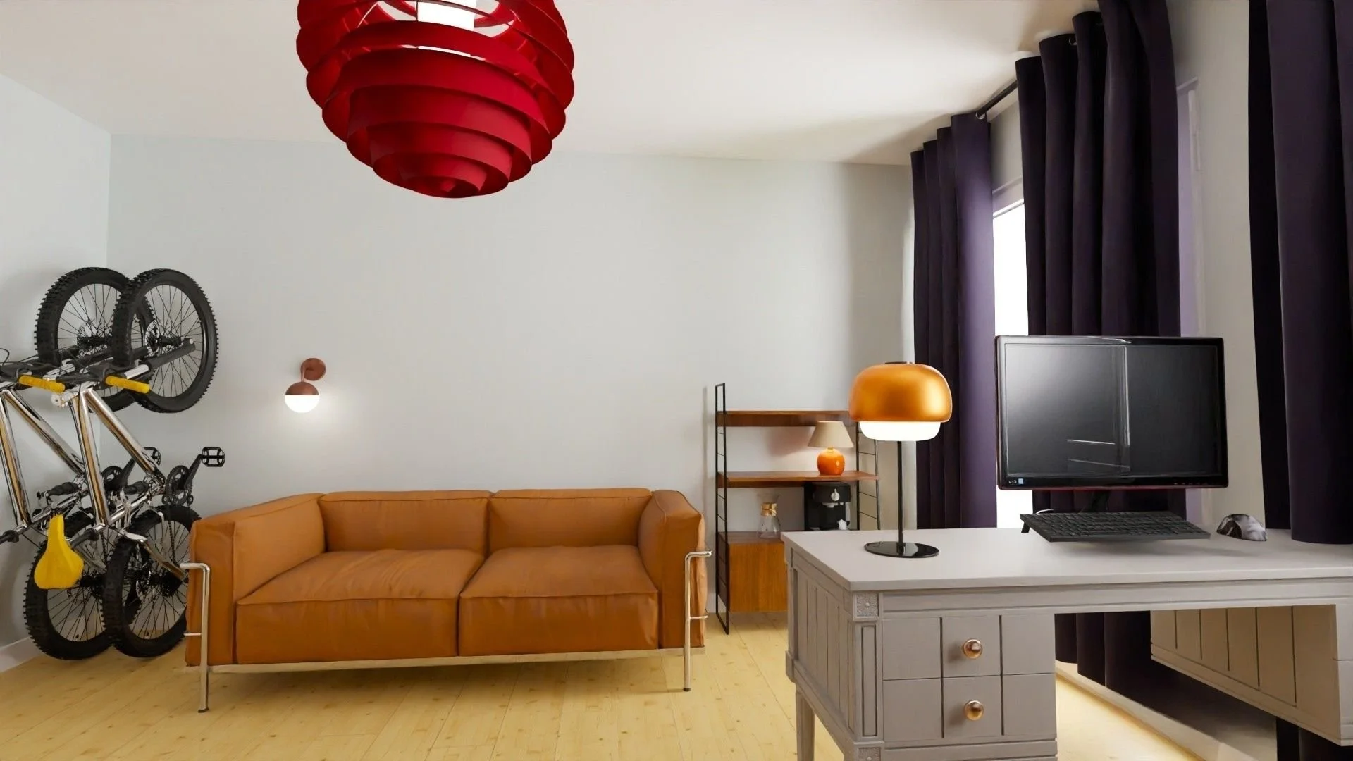 Project Luni is a charming Berlin Altbau rental that already had great bones and a beautiful selection of vintage pieces that just needed the right background to shine. I transformed the long hallway into an art gallery with a bold colour statement, added warmth and cosiness to the white walls in the bedroom and living room, and gave the study a refreshing twist with light blue tones, a touch of 70s spirit, and a custom cabinetry plan combining functionality with style. The orange sleeping couch, deep blue accents, and playful pops of red complete the look with a unique, eclectic feel.